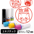 通常の印面サイズは10mmですが、当店はちょっと大きめの12mmです。 (イラストが入ると10mmサイズでは小さく感じてしまいます) 12mmはイラストも文字も見やすく、大きすぎることもないちょうどいいサイズです。 この12mmサイズも当店の特徴の1つです。 10mmをご希望の方は備考欄へ「10mm希望」と記入していただければ 対応させていただきます。 |